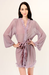 Discover the charm and elegance of our exclusive luxury robe! Made from a sheer, lightweight lavender material, this garment will envelop you in a touch of sophistication and comfort.