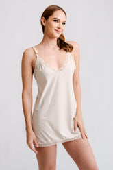 - Delicate lace on the neckline and hem