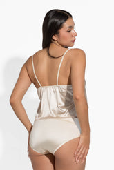 Enjoy comfort in style with our Lace Dream top and panty set. Crafted from soft-touch satin and featuring delicate floral lace details, this set is perfect for a night in or a special moment at home.