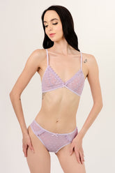 El bralette sin varilla ofrece soporte ligero, realzando tu figura con suavidad, mientras que la panty tipo bikini brinda una silueta favorecedora con cobertura cómoda.