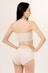 • Top tipo bandeau sin tirantes, ideal para looks relajados o para dormir